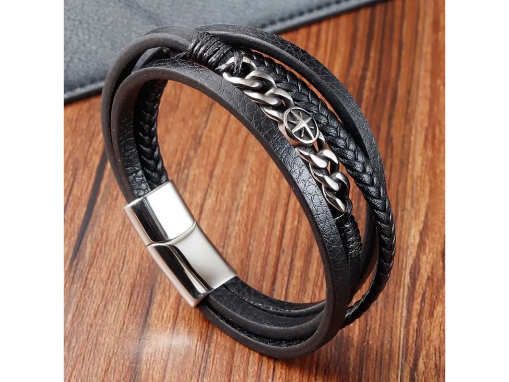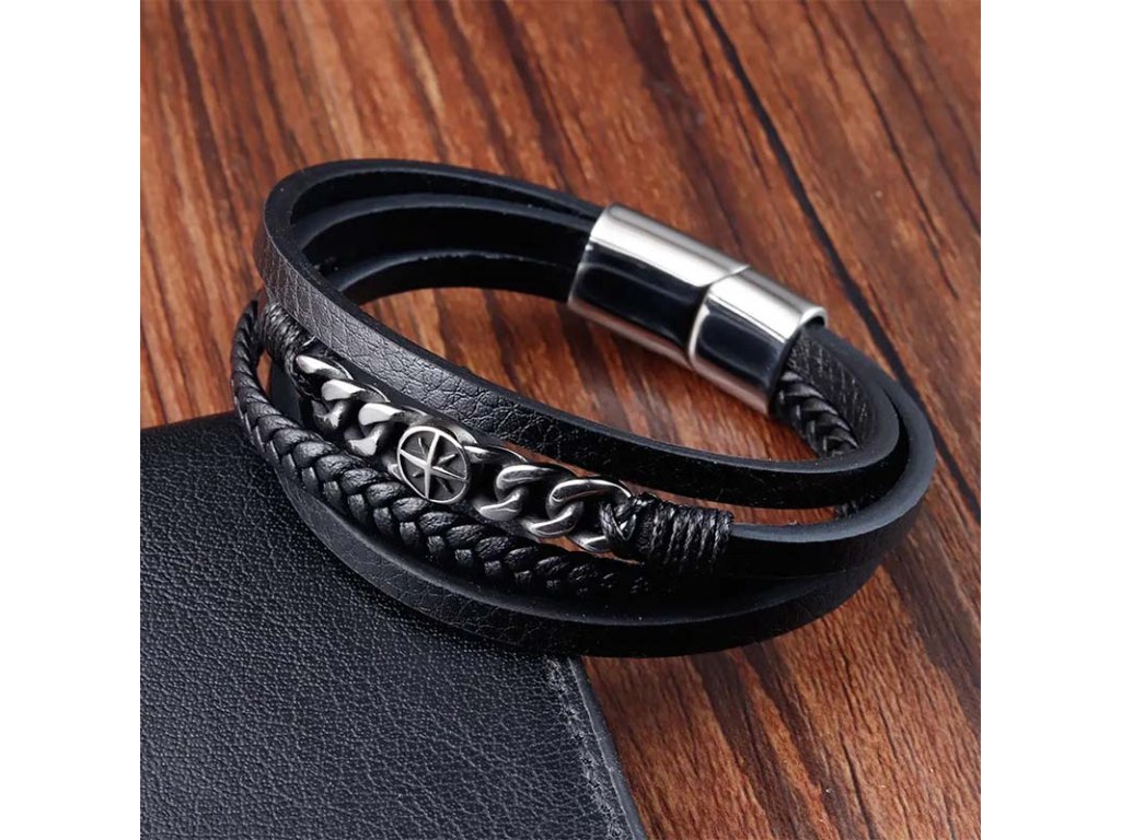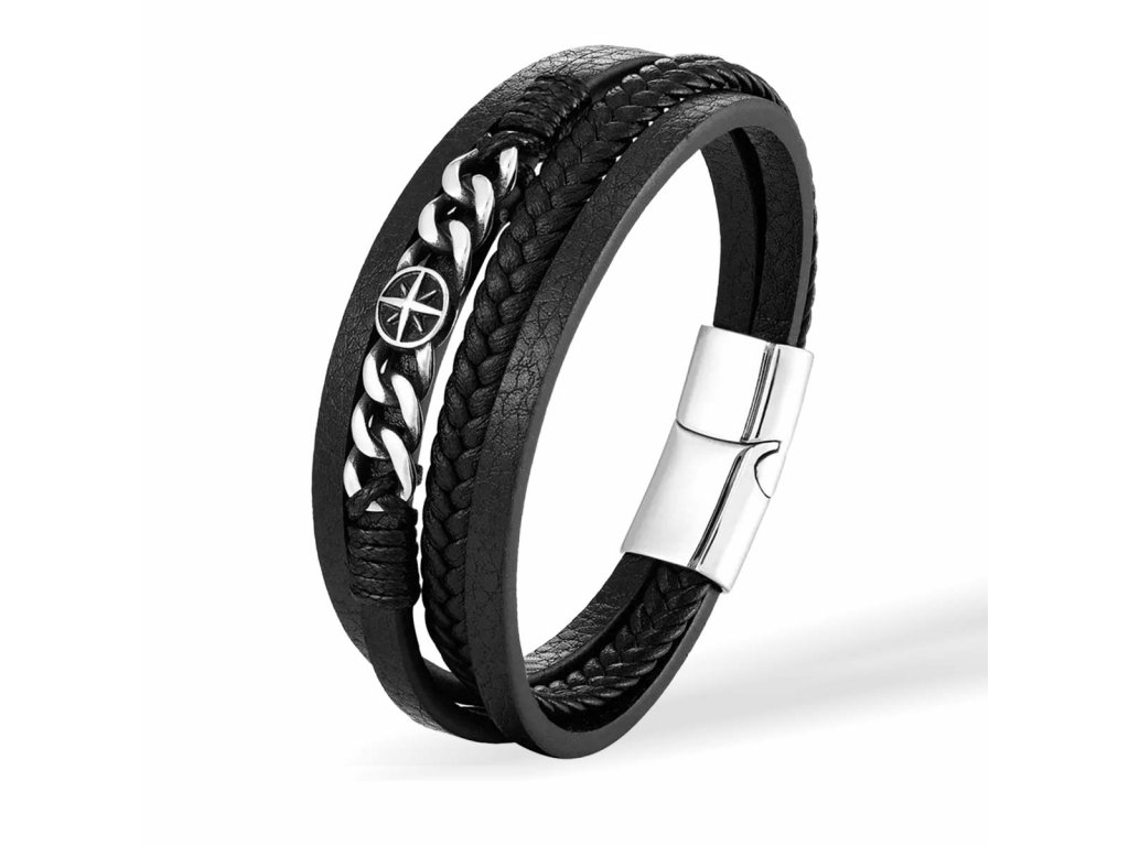 Kožený náramok Navy Kompas chirurgická oceľ +Darčeková krabička zdarma