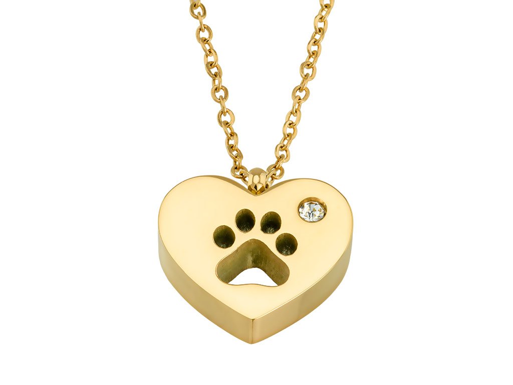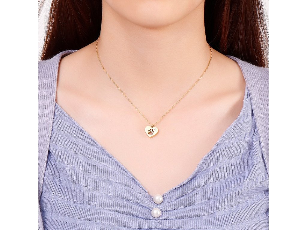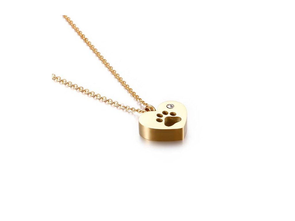 - Prívesok v tvare srdca s vyrytou labkou.