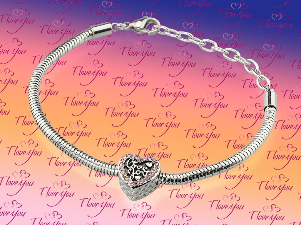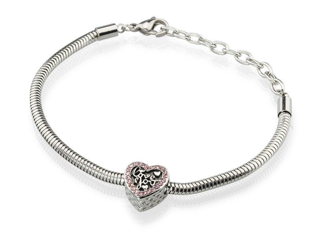 Náramok Pink Crystal Love You chirurgická oceľ +Darčeková krabička zdarma