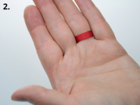 - Ak si vyberiete plastové meradlo, jednoducho ho prevlečte cez otvor, navlečte na prst a nájdite požadovanú veľkosť.