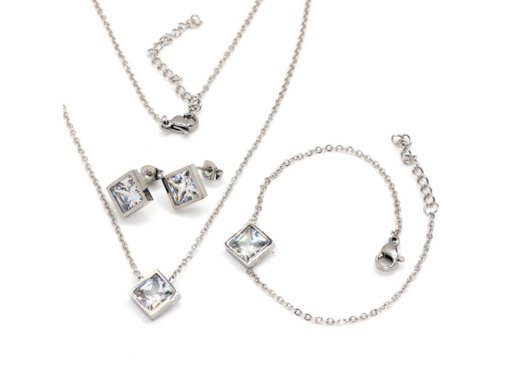 Sada šperkov Shiny Square chirurgická oceľ +Darčeková krabička zdarma +Silikónová ochranná zarážka zdarma