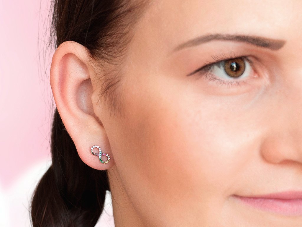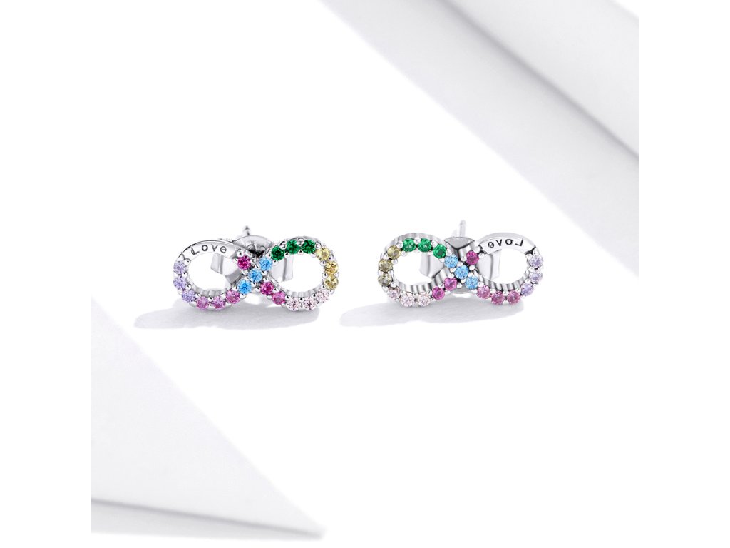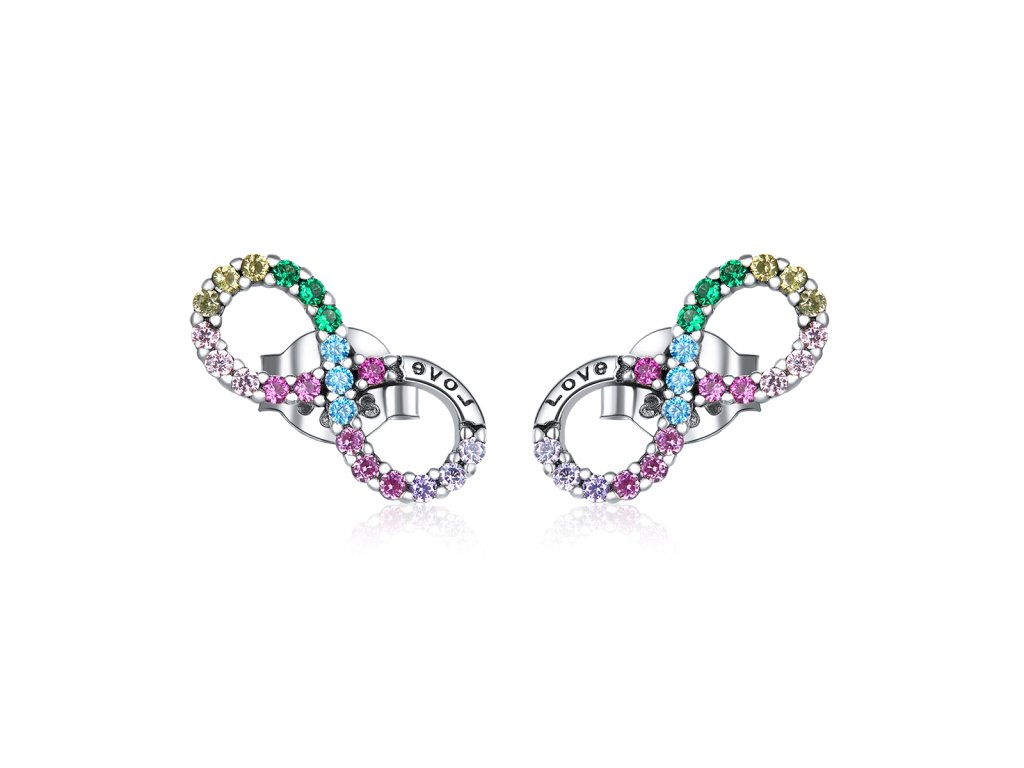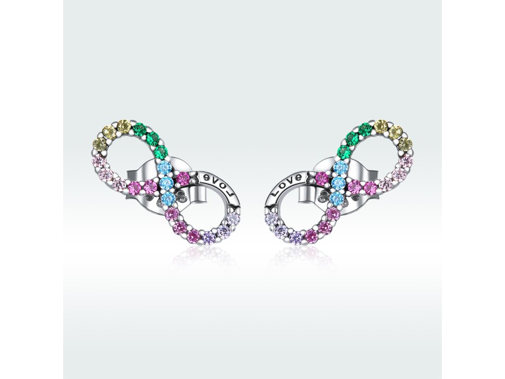 Strieborné napichovacie náušnice Infinite Rainbow Ag 925/1000 +Darčeková krabička zdarma +Silikónová ochranná zarážka zdarma