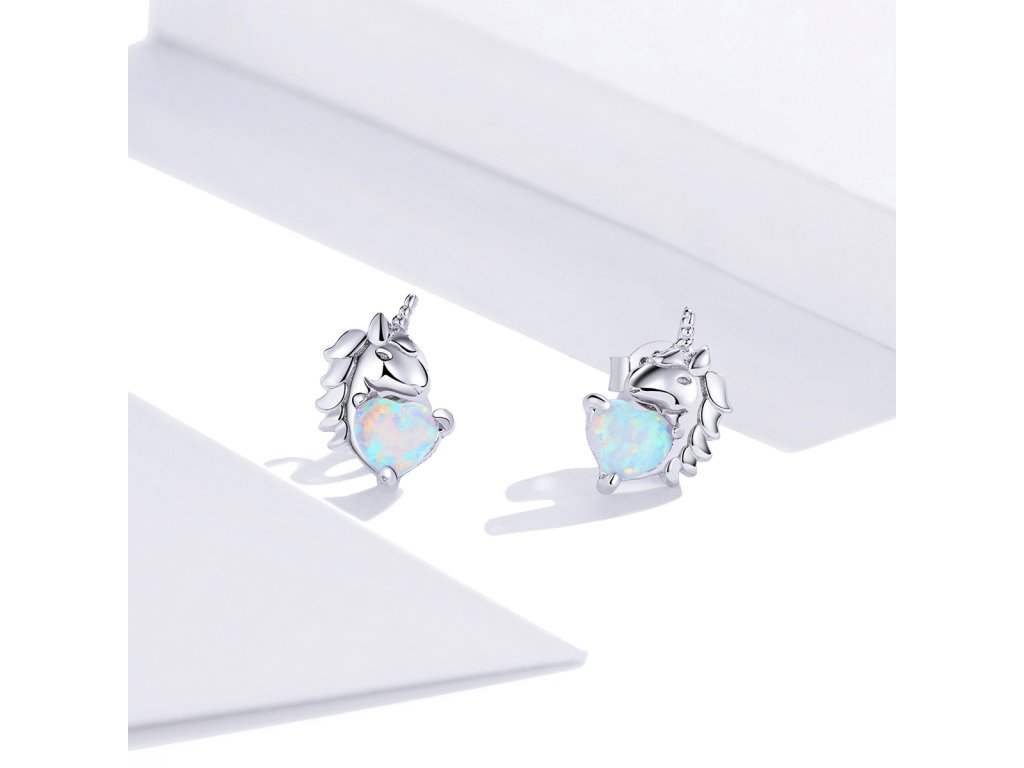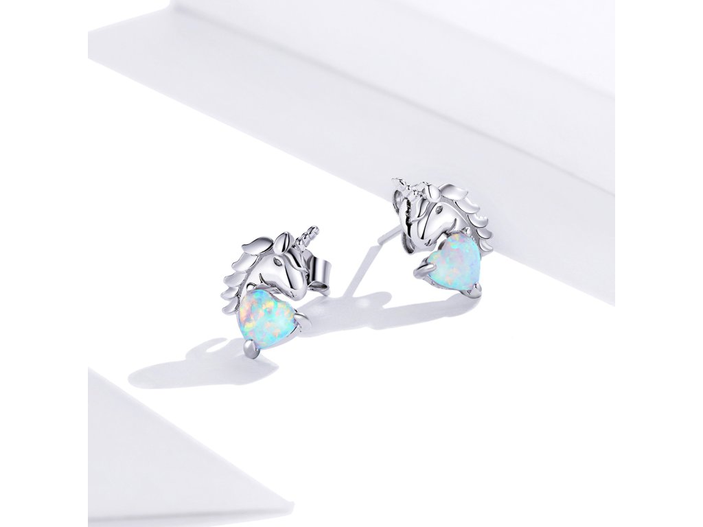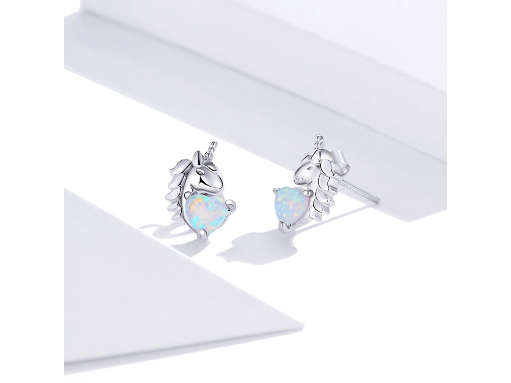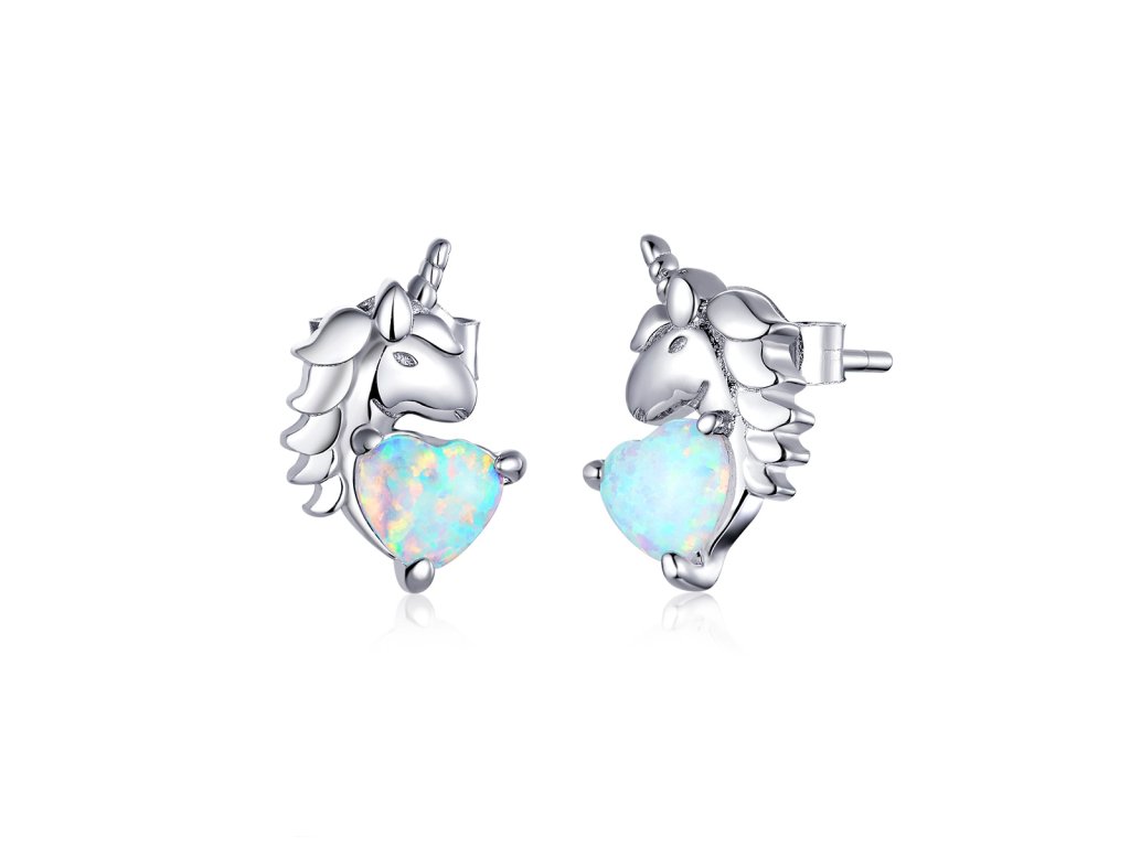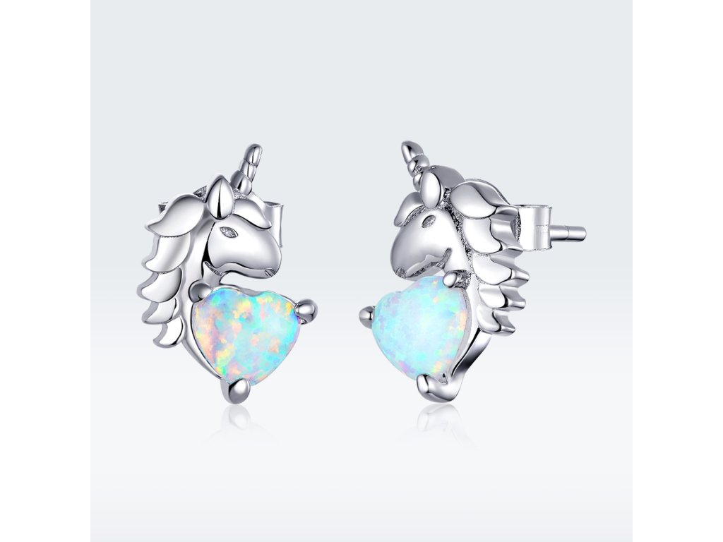 Strieborné napichovacie náušnice Jednorožec Lásky Ag 925/1000 +Darčeková krabička zdarma +Silikónová ochranná zarážka zdarma