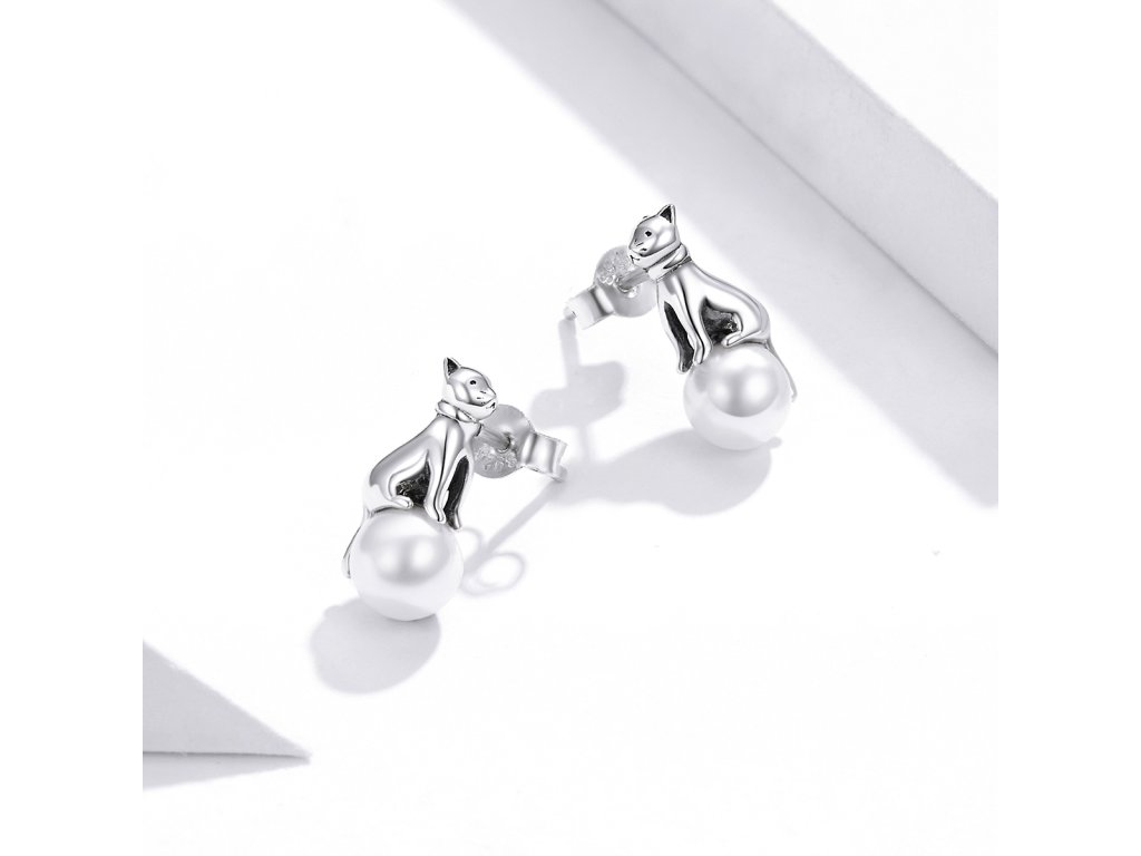 Strieborné napichovacie náušnice Mačacie Perla Ag 925/1000 +Darčeková krabička zdarma +Silikónová ochranná zarážka zdarma