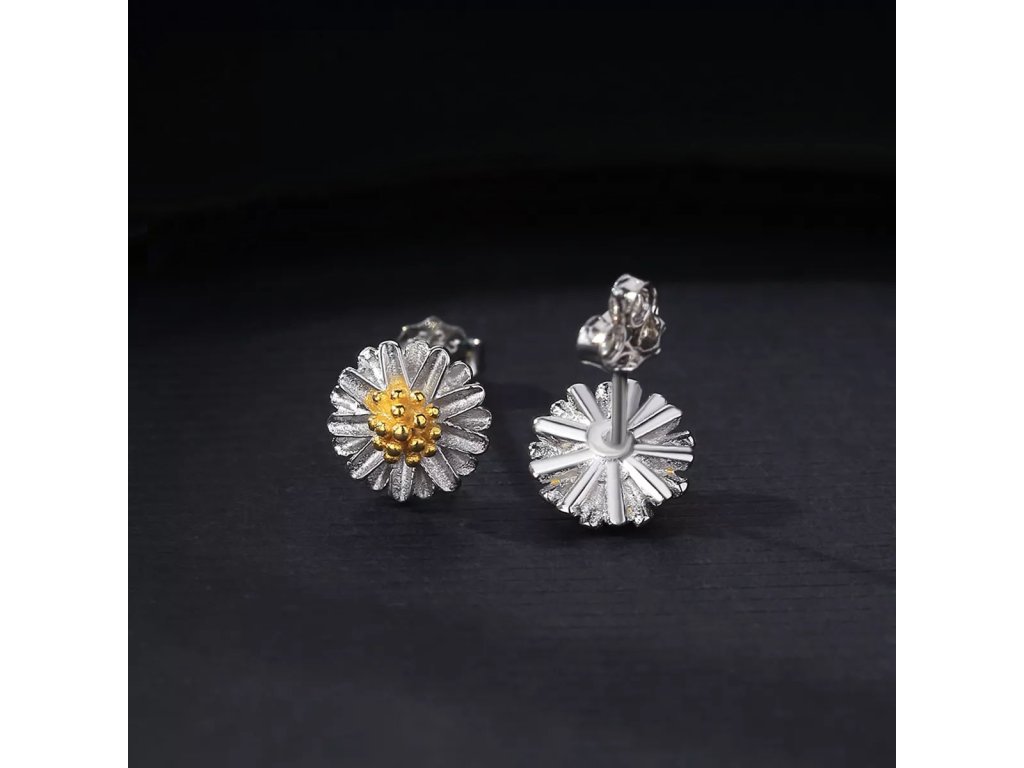 - Stále módny dizajn náušníc s kvetinovým motívom sedmokrásky.