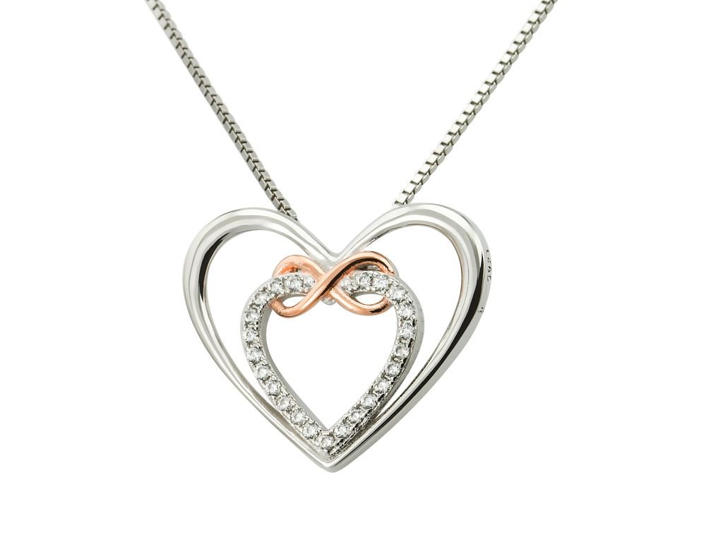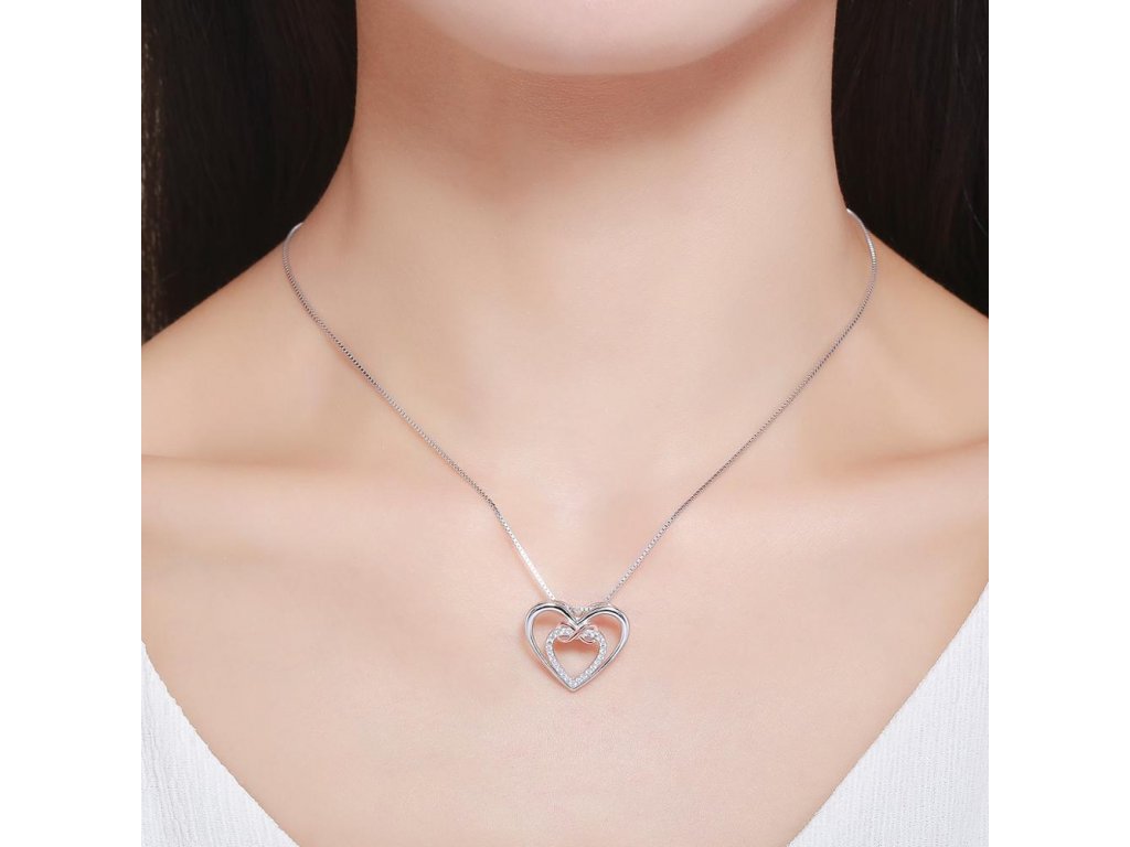 - Viac ako 20 okrúhlych čírych kubických zirkónov je osadených v menšom z dvoch sŕdc.