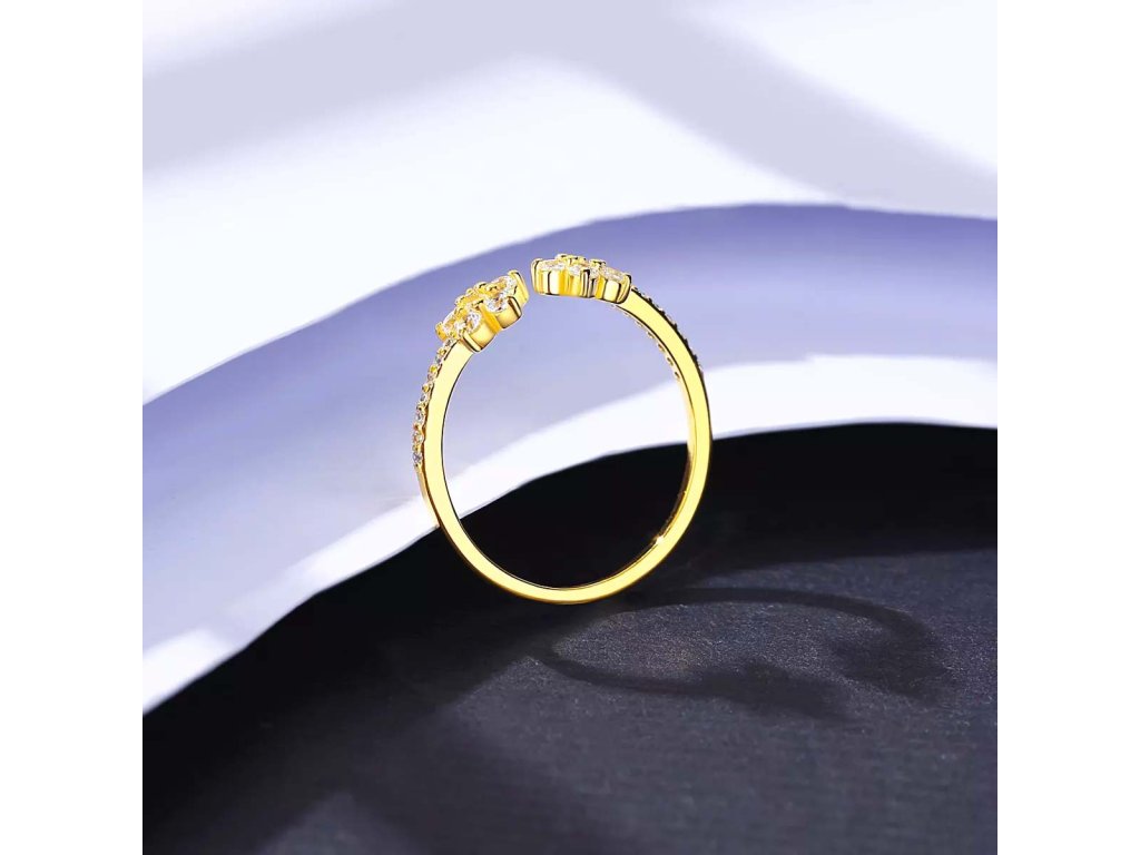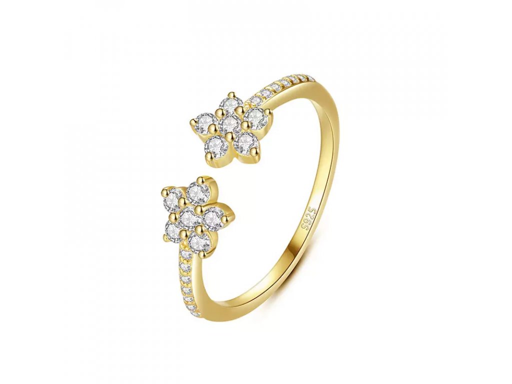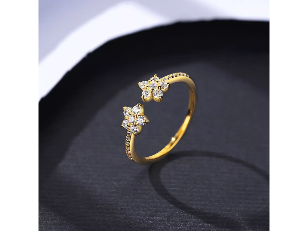 - Dve kvetinky v hlave prsteňa sú osadené celkom 10 čírymi kubickými zirkónmi s briliantovým brusom.