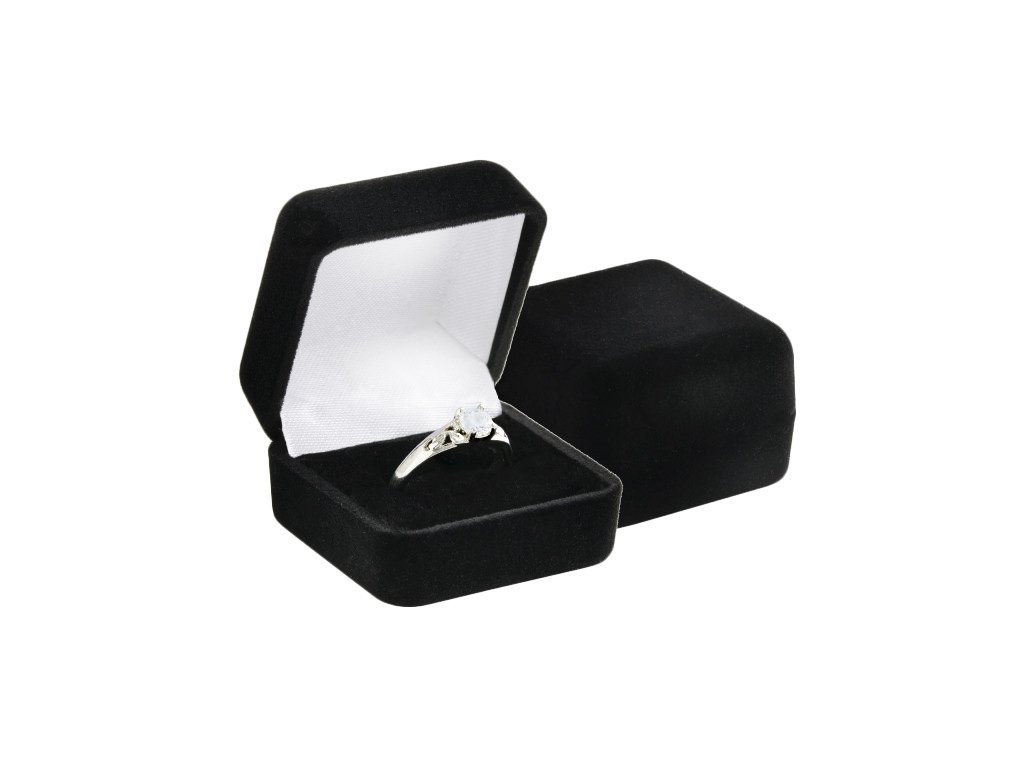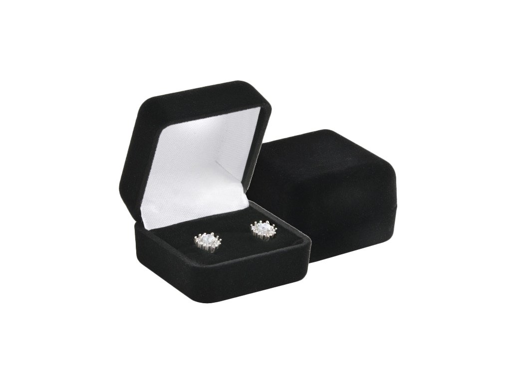 Zamatová čierna krabička Elegance na prsteň alebo napichovacie náušnice